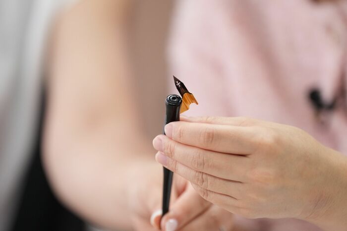 島野さんが教えるカリグラフィーでは、主に「オブリークホルダー」という道具に「ニブ」と呼ばれるペン先を挿して使います。