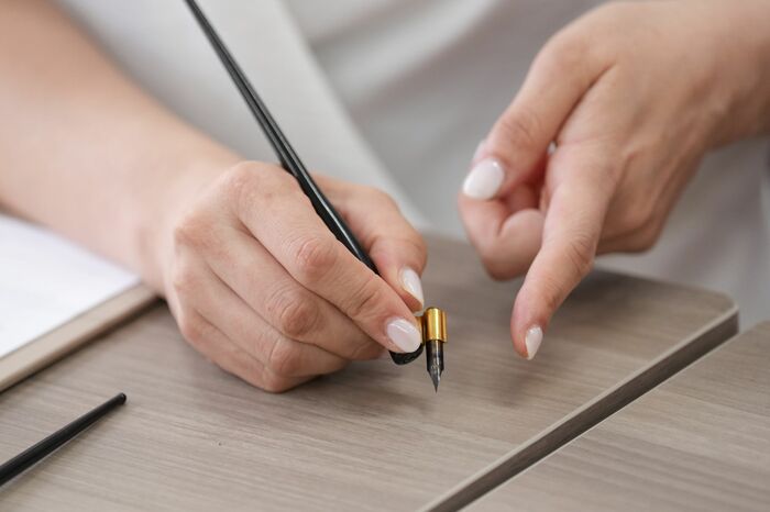カリグラフィーの道具の持ち方 「リラックス」と「角度」が重要