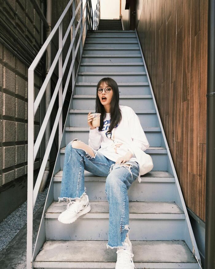 また、太ももを大胆に肌見せしたジーンズを着こなした姿も披露するも、「知らないおばあちゃんに、ズボン破れてると運気下がるよって叱られました」とまさかの出来事があったことも明かしました。