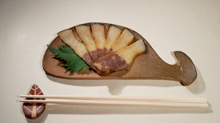 続いて、芳醇な香りとコクの「自家製くじらベーコンの燻製」をいただいた松岡さんは、「燻製にしたことで、よりくじらの香りが良い意味で強くなる」と、目を細めました。