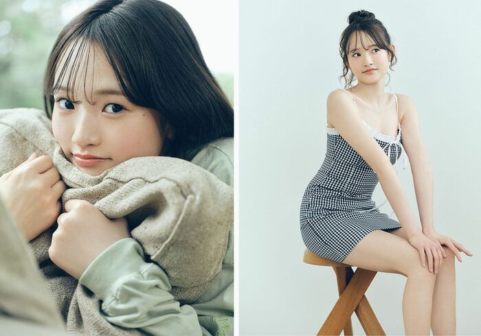 「オーディション後、初の雑誌のお仕事だったので、かなり緊張しました。でもとても楽しかったです!お気に入りは、お団子ヘアにチェックワンピースのカット。私らしいところもありつつ、ちょっと大人っぽい部分もお見せできたかなと思います。今回の撮影は、私を見つけてくれた皆さんに少しでも恩返ししたいという気持ちで挑戦しました。私の新しい一面を楽しんでもらえたら嬉しいです。これからもよろしくお願いします!」