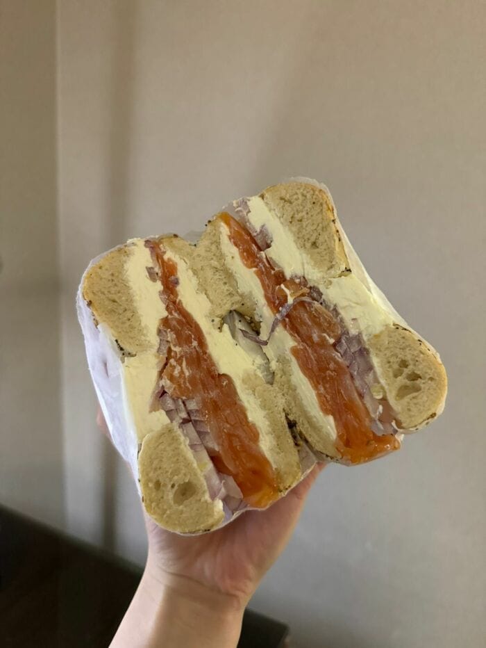 日本のものは、もちっとしていて優しいベーグルが多いと思うんですけど、しっかり噛み応えのあるベーグルでした。