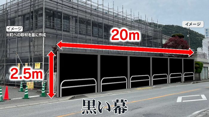 苦肉の策として、コンビニの向かい側の歩道から富士山を撮影できないように、高さ2.5m、幅20mの巨大な黒い幕を設置することを決定、4月30日から設置作業が開始されました。