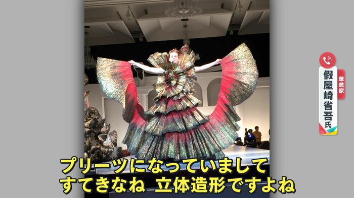 プリーツになっていまして、すてきな立体造形ですよね。動く彫刻のような、そんな作品を作られたときもほとんど寝ずに、というぐらいアイデアが沸き起こってきたものを具現化するという美への飽くなき執念というものはやっぱりすごいものがあるなと…。