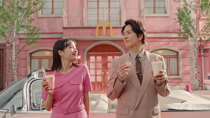 山Pこと山下智久さんがマクドナルドのCMに初出演。初共演となる広瀬すずさんと、映画『バービー』のようなピンクの世界観で「ごろっともも」果肉のスムージーやフラッペをPRするCMが2024年5月7日から放送されます。