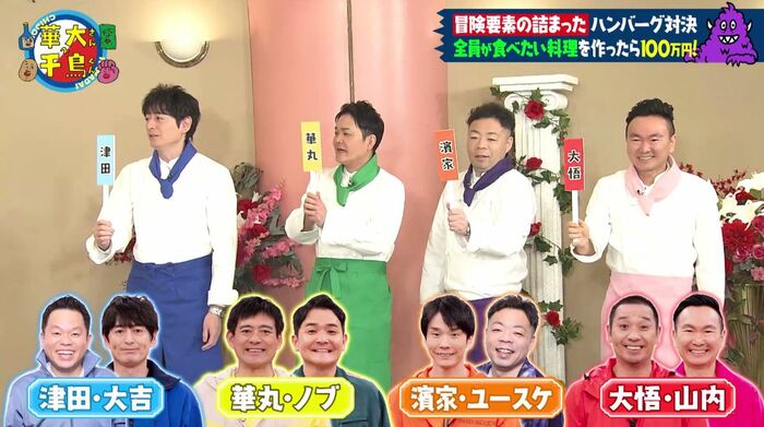 くじ引きの結果、華丸さん&ノブさん、大吉さん&津田さん、大悟さん&山内さん、濱家さん&ユースケさんのペアに分かれました。