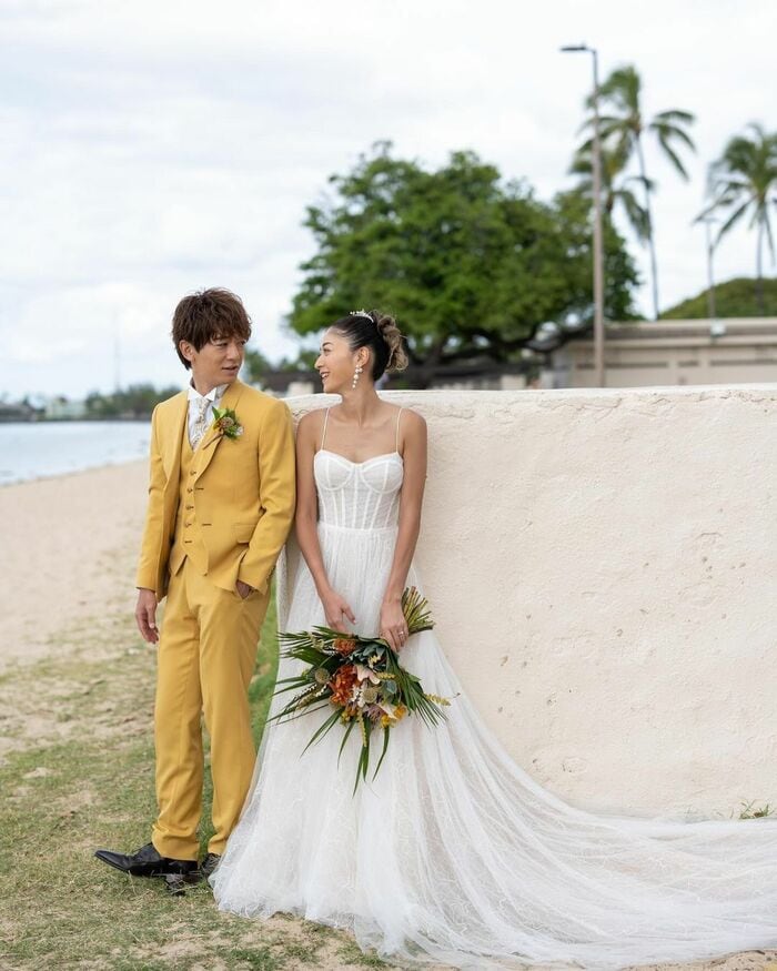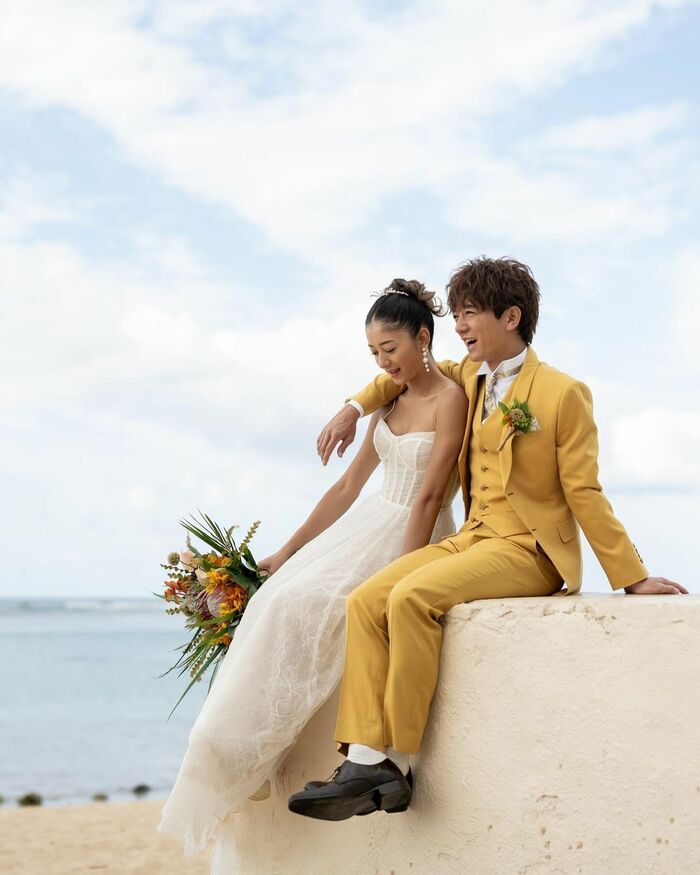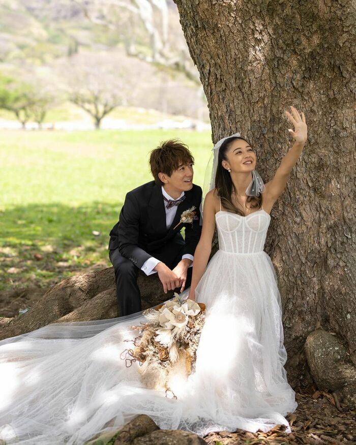 大倉さんはコメントの中でみちょぱさんのことを「みー」と呼び、「みーのウエディングドレスと撮影する場所に合うカラーをイメージしたことはもちろん、みーに選んでもらいました」とみちょぱさんにタキシードを選んでもらったことを明かしました。