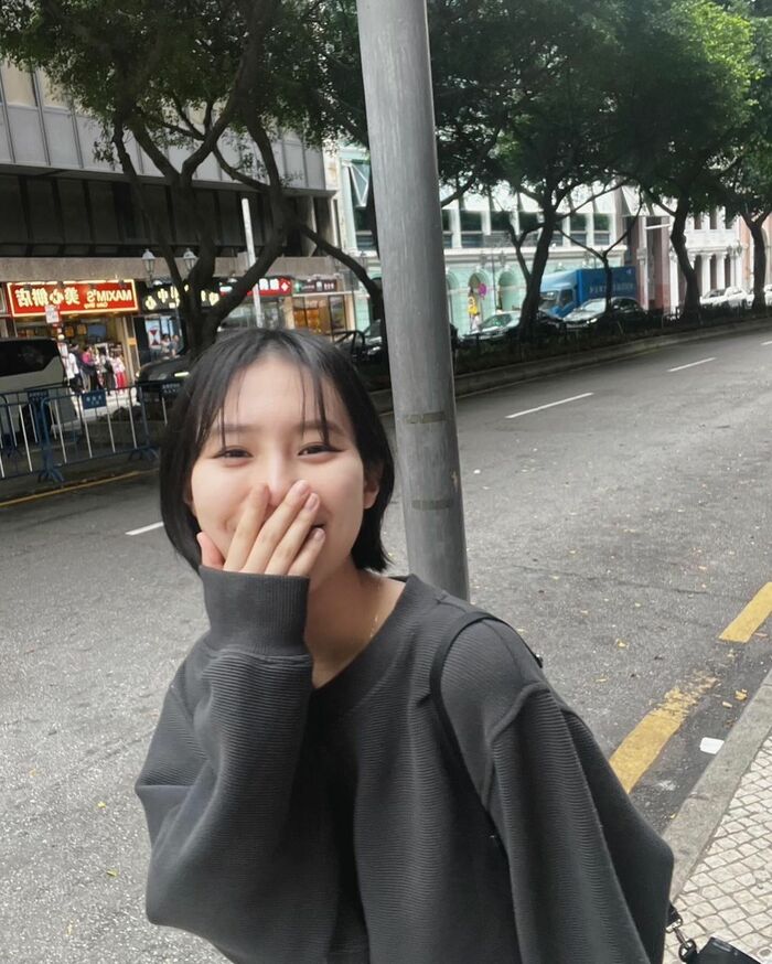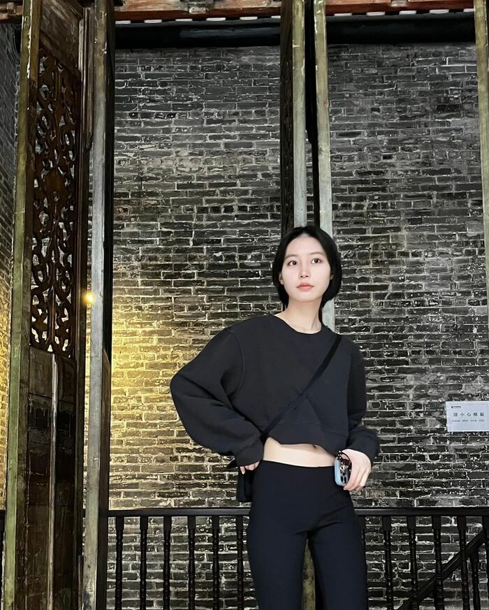 さらに、短めの黒のトップスで、ちらっとおへそを見せた大人っぽい姿も見せました。