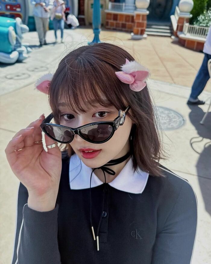 サングラスを鼻先までずらした大人かわいいショットや、夜のシンデレラ城をバックに撮った不意打ちショットなどを公開しました。