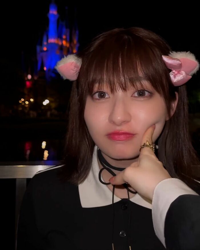 さらに黒い長袖のポロシャツに桜田さんとお揃いの猫耳のピンをつけた吉川さんとの2ショット写真も公開。