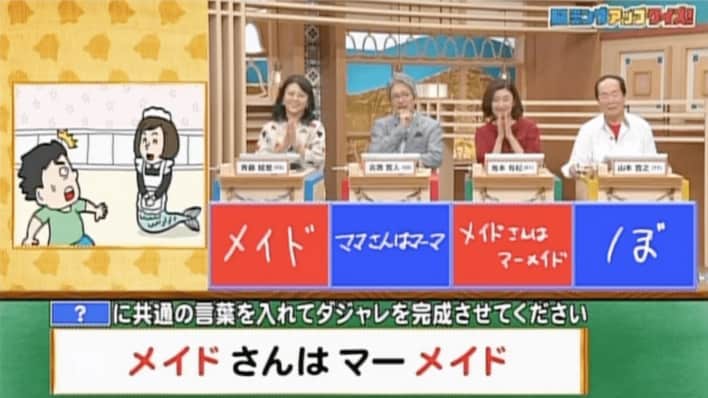 ヒント。女性はいわゆる“お手伝いさん”です。そして、彼女の下半身が魚のようになっているということは…。