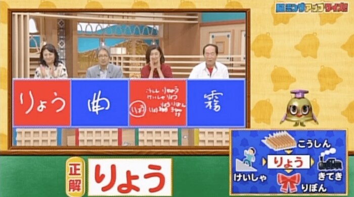 正解は「りょう(軽車両・香辛料・猟奇的・料理本)」。斉藤絵里さんと兎本有紀さんの2人が正解でした。