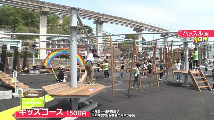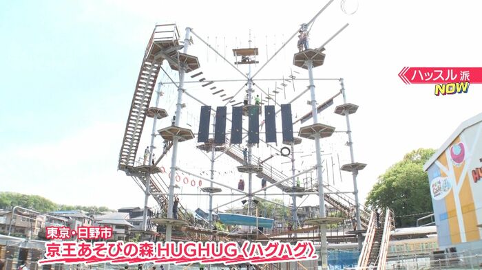 まず長尾さんがやってきたのは、東京・日野市にある『京王あそびの森HUGHUG』に2024年3月に誕生した都内初の巨大アスレチックタワー「HUGTRATOPS」。高さ約16メートルでスリル体験ができる『アスレチックタワー』と、人気のジップラインなどがある『キッズコース』があり、『アスレチックタワー』は全部で37種類、『キッズコース』は全32種類のアスレチックアイテムを、年齢や体力に合わせて選ぶことができます。
