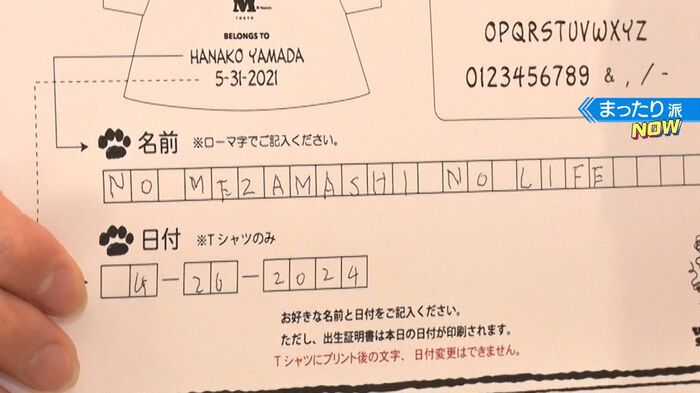 長尾さんもオリジナルスヌーピー作りを体験!まずは長尾さんのメンバーカラーである黄色のTシャツと茶色の首輪をチョイス。選んだTシャツには好きな文字をプリントしてもらえるのですが、長尾さんが書いたのは…