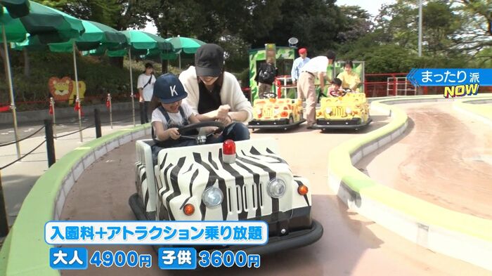 入園料+アトラクション乗り放題:大人4900円 子供3600円