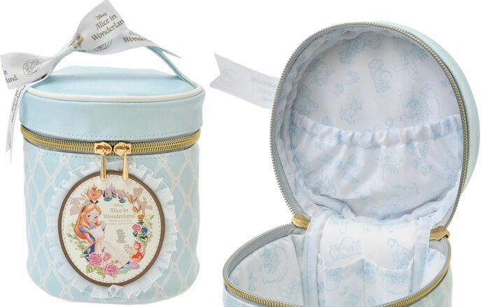 水色をベースに白のフリルや持ち手のリボンがおとなかわいいバニティポーチも登場。