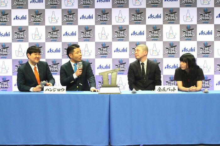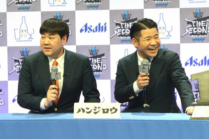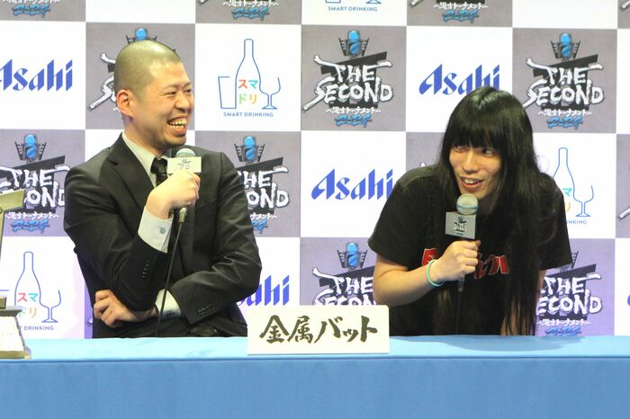 また、金属バットだけが前回(第1回)のグランプリファイナルに出場しているということで「『THE SECOND』への思い」を聞かれると、小林圭輔さんは「今回も(出場者の)喫煙率が高いので、当日を無事に迎えられるように頑張りたい」とボケ、友保隼平さんも「ぜひ、舞台袖でも吸えるように、よろしくお願いします」と乗っかりました。