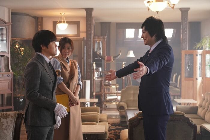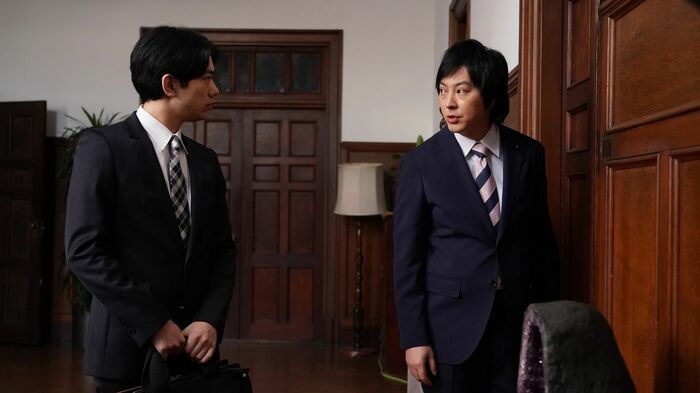 第一発見者は健一郎と第二秘書の村井浩平(渡辺佑太朗)。彼らが議員事務所での打ち合わせを終えて帰宅すると、書斎のドアに鍵がかかっていたため庭に回り込んで室内を確認すると田所が倒れていた。