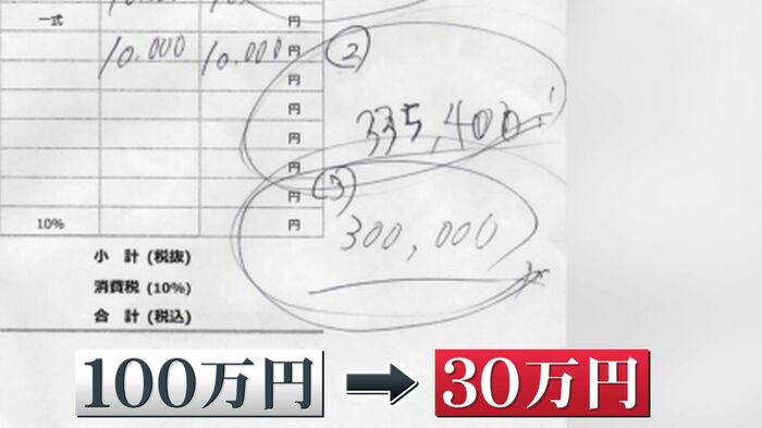 せかすように、100万円から、即決すれば30万円まで値引きすると男性に持ちかけたという駆除業者。