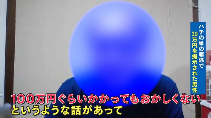 ハチの巣を見て、開口一番「これはやばいですね」みたいな。「100万円ぐらいかかってもおかしくない」というような話があって。