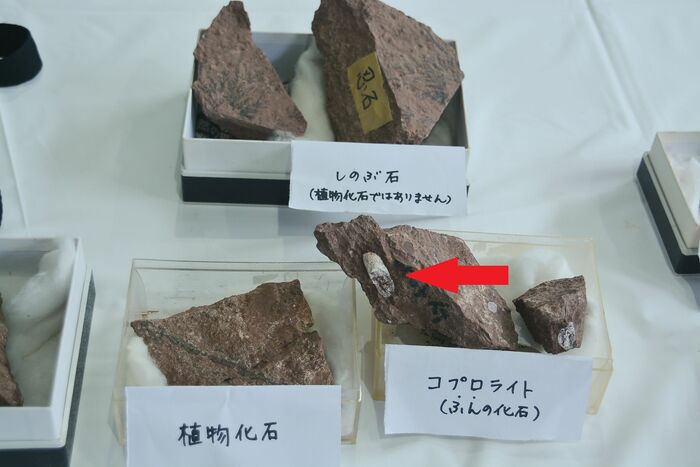 受付に展示された同じ石から発見された化石類を見て、「立派なコプロライトだな…確かにこれに比べたら虫の糞の大きさか」などと少々残念な気持ちになりながらも、実際に化石を発掘したこと、そして研究員の方との化石を通して会話ができたことで大きな充実感が得られました。