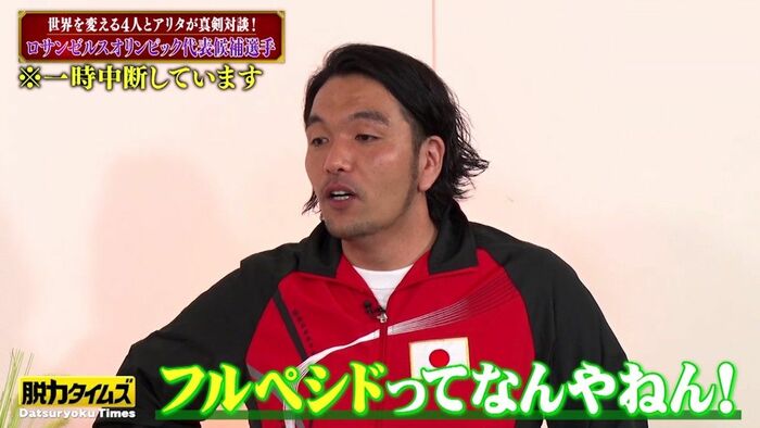キャスターアリタから「運営の方次第というところも?」と問い詰められると、「だから、敵チームのことよりも、運営の特徴を研究しています。会場や国によって運営のクセが違うので」と、架空の競技“フルペシド”のルールを、それっぽく説明。