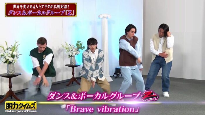 ソロパートでは、独特のステップを披露して、キャスターアリタと木南さんは笑いをこらえる展開もありながら…妙にシンクロ…最後は、4人そろってクールな「Z」の決めポーズ!