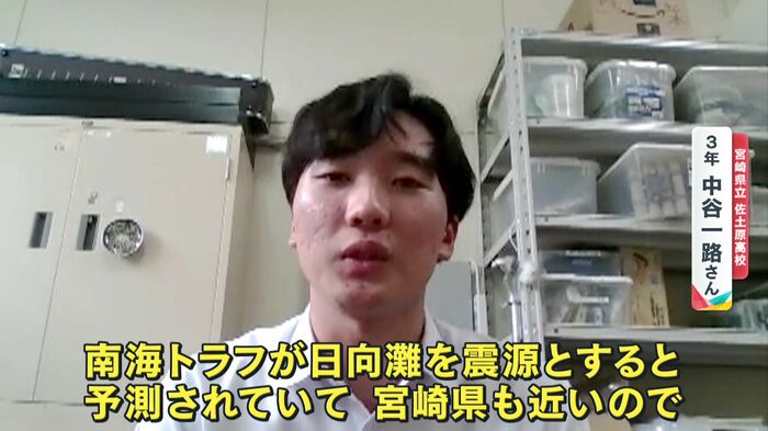 南海トラフが日向灘を震源とするって予測されているので、宮崎も近いので、地震というものがすぐ近くにあるんだよっていうことを知ってもらいたいですね。