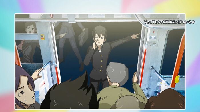 防災への意識を高めてもらうために宮崎県が製作したこのアニメは、バスで帰宅中の高校生が「南海トラフ地震」に遭遇するというストーリー。