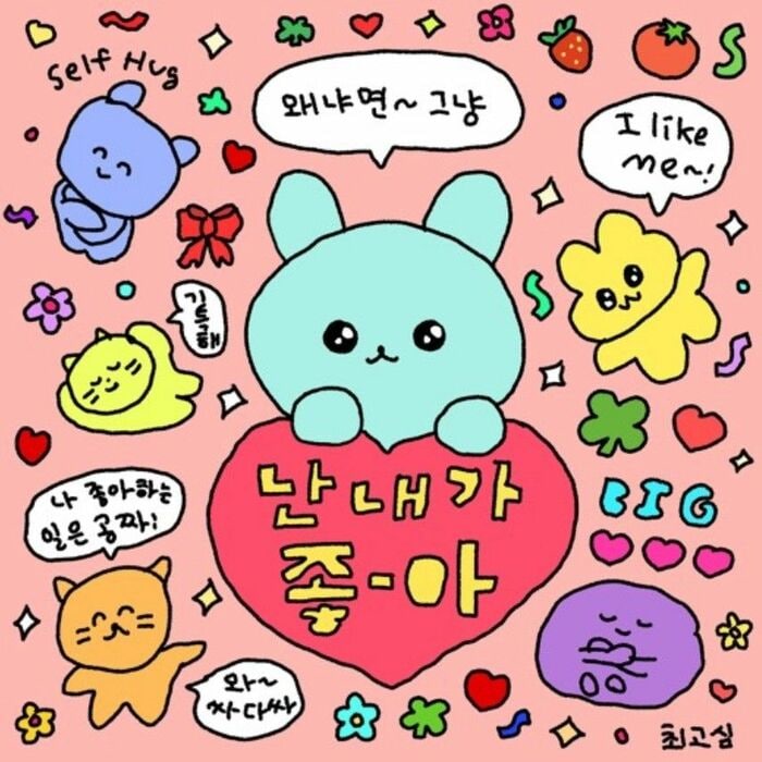 うさぎやネコのようなゴシムちゃんたちがにっこりスマイルを見せる「私は私が好き」。