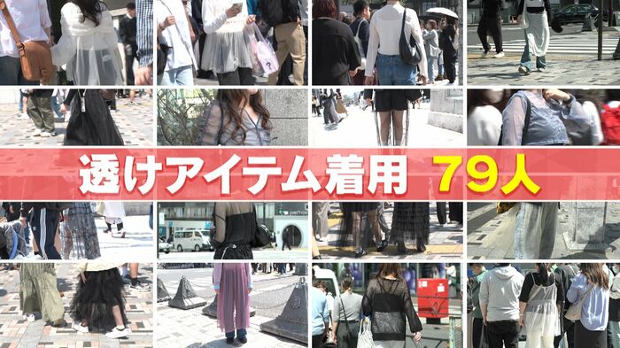 4月の日曜日、原宿で1時間調査してみると、トップスやスカートにワンピースなどの“透けアイテム”を身につけていた人を79人も発見しました。