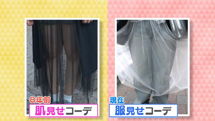 今から8年前、2016年のココ調では、短パンの上に透けスカートを着るといった“肌見せコーデ”が流行していましたが、