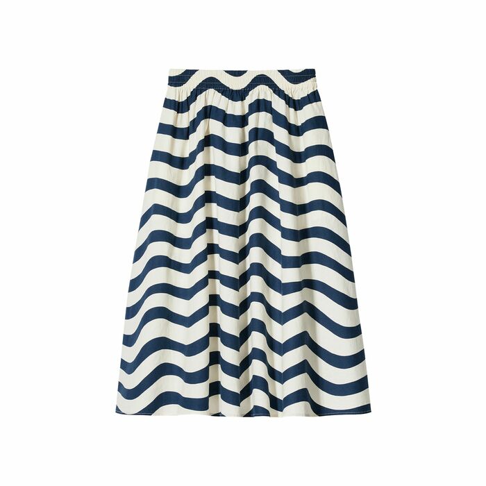 また、白地にネイビーの太めのストライプが大胆に入ったリネンブレンドスカート(4990円)も登場します。