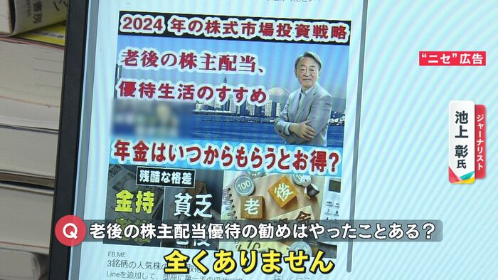 ―いずれも池上彰さんの“ニセ広告”なんですが、名前や写真が使用されているということで、ちょっと信用してしまいそうですが…。