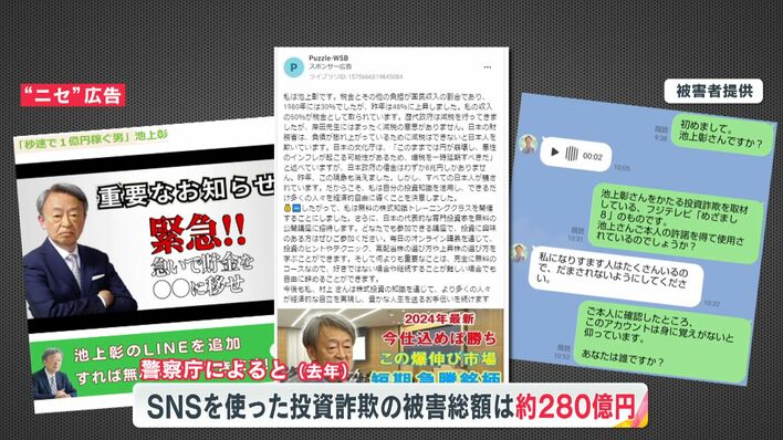 警察庁によると、SNSを使った投資詐欺の2023年の被害総額は約280億円に。