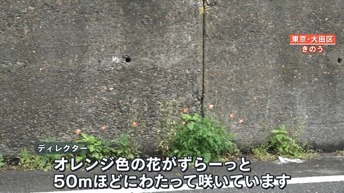 オレンジ色の花がずらーっと50mほどにわたって咲いています。