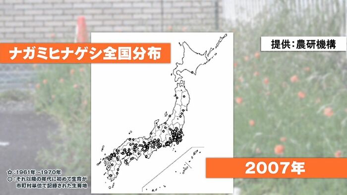 外来植物であるナガミヒナゲシは、1961年に東京・世田谷区で発見され、その後、2000年代に入り、日本中に拡大していったといいます。