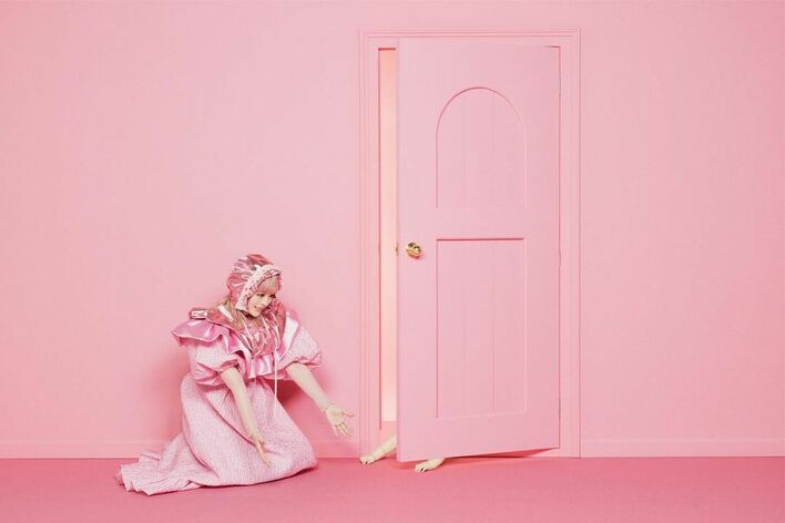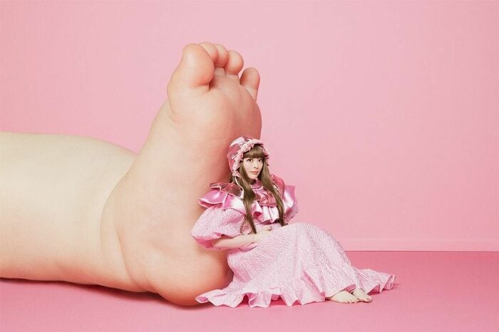 きゃりーさんらしいメルヘンな世界観の写真ではお腹に手をあてるきゃりーさんの姿が。