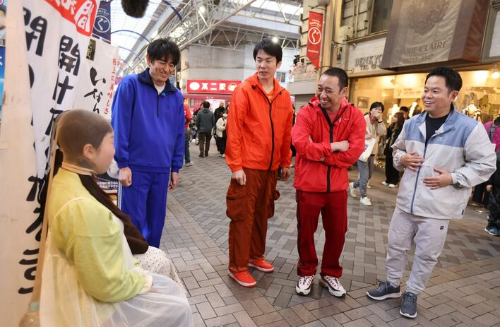 博多華丸・大吉、千鳥(大悟さん、ノブさん)、かまいたち(山内健司さん、濱家隆一さん)、ダイアン(津田篤宏さん、ユースケさん)が2チームに分かれ、商店街を舞台にチーム対抗の人探しゲームを展開しました。