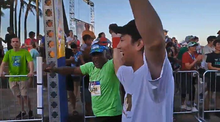 これには、狩野さんも「ただ‥ゴール直前で、全く知らない謎のおじさんが手を繋いできて一緒にゴールしました‥誰?この人‥。。」と困惑しながらも楽しんだ様子でした。