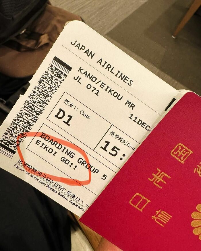 そして、「帰国する時に、JALさんがサプライズでチケットにEIKO!GO!!と印刷してくれた!本当に感謝 今年も残りわずか。頑張ります!」と、粋なはからいに感謝をのべた狩野さん。