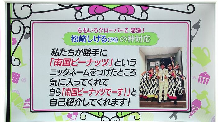 松崎さんとは何度もコンサートなどで共演しているももクロですが、まだ親しくなる前に勝手に松崎さんに「南国ピーナッツ」とニックネームをつけたそう。