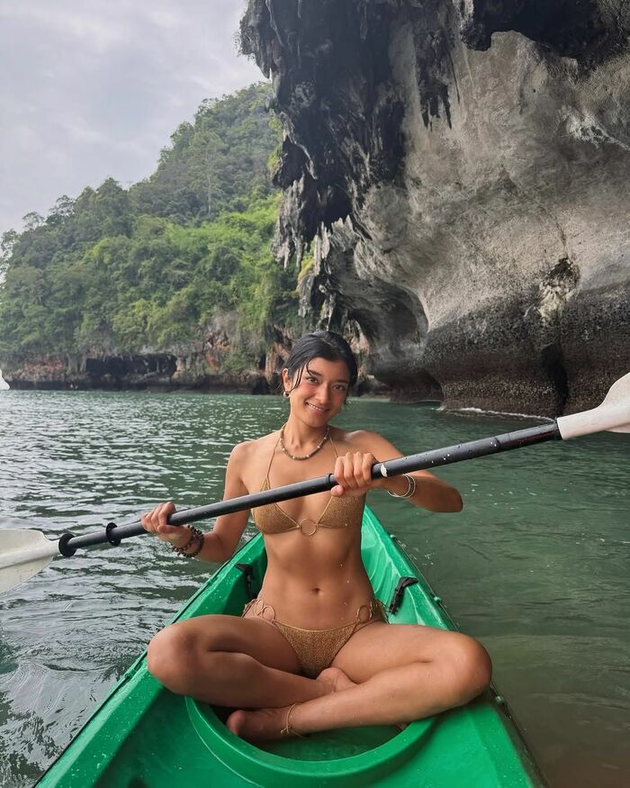 公開された写真では、ベージュのビキニを着たローラさんが、海の上でカヤックをこいでいる姿が!