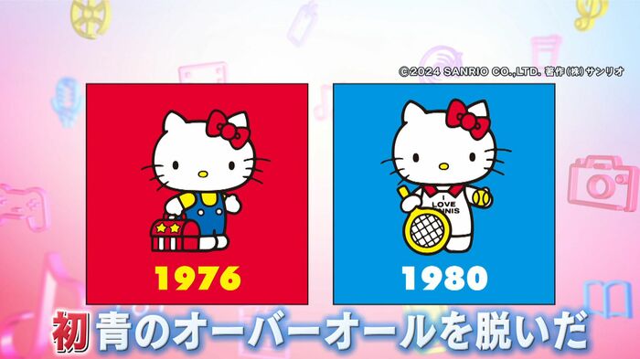 この時、定番だった“青のオーバーオール”を初めて脱いだキティちゃん。 その後も時代の最先端のファッションを取り入れてきました。