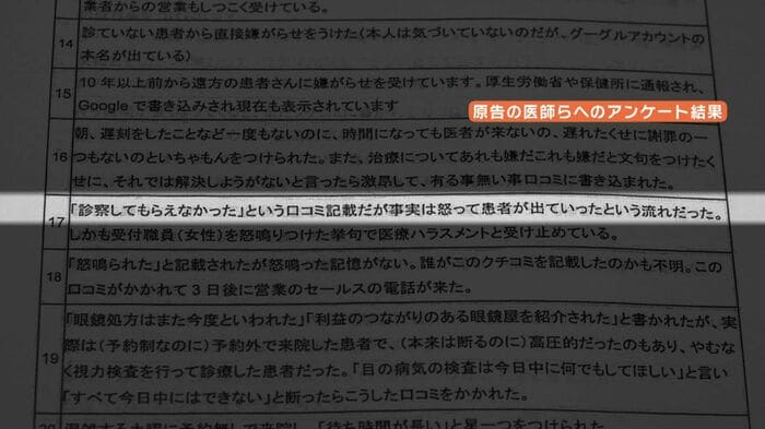 今回、グーグルを集団提訴した医師らが訴えた“口コミ”の内容は・・・