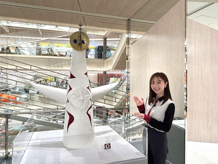 GINZA SIXの4階にはヤノベさんにアーティストとしてのインスピレーションを与えた芸術家・岡本太郎さんが制作した「太陽の塔」の50分の1の原型模型も飾られています。1970年の大阪万博のシンボルは54年経っても色あせないアート作品です。