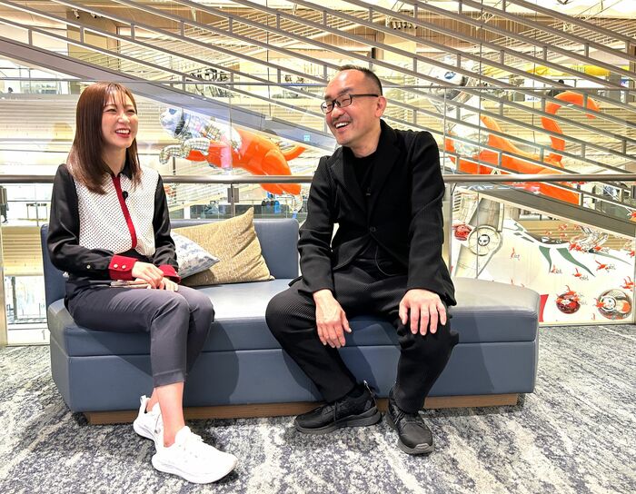 佐久間アナは、まず、GINZA SIXの中央吹き抜け空間という場所をどう意識したのか、ヤノベさんに聞きました。