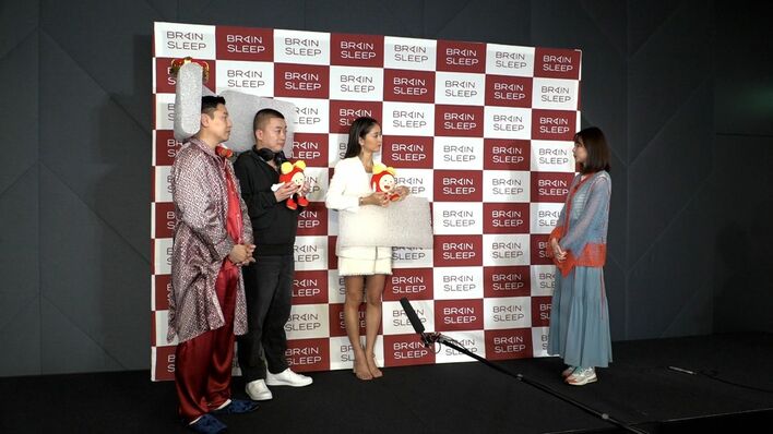 チョコレートプラネット(松尾駿さん、長田庄平さん)と池田美優さんが4月17日、睡眠グッズを販売する「ブレインスリープ」のメディア発表会に出席しました。