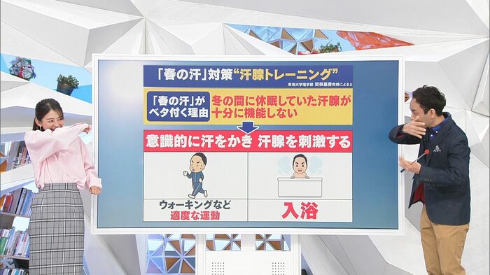 実は夏よりやっかいな「春の汗」対策について、「めざまし8」天達気象予報士が解説します。