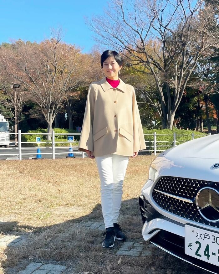 女優やタレントとして活動する菊川怜さん(46)が、2024年12月12日に自身のインスタグラムを更新し、ベンツとのリンクコーデのショットを披露しました。